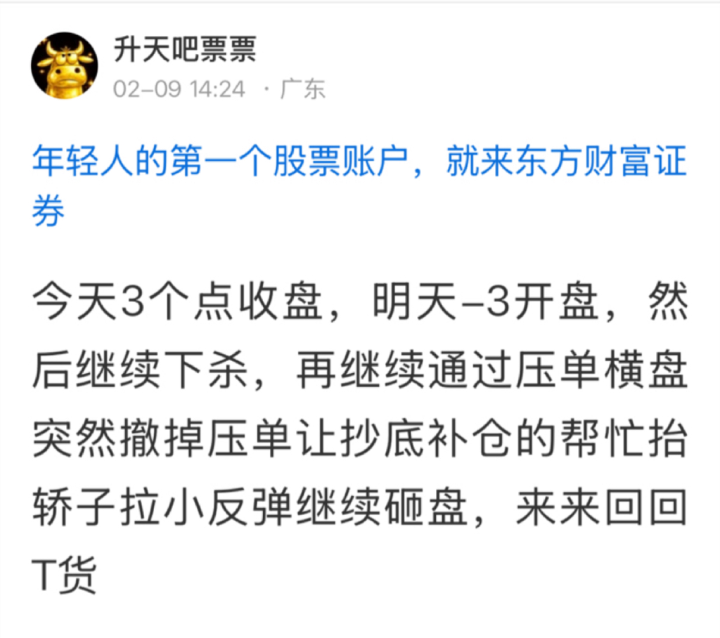 温馨提示: 1.根据《证券法》规定,禁止编造、传播虚假信息或者误导性信息,扰乱证券市场;2.用户在本社区发表的所有资料、言论等仅代表个人观点,与本网站立场无关,不对您构成任何投资建议。用户应基于自己的独立判断,自行决定证券投资并承担相应风险。《东方财富社区管理规定》