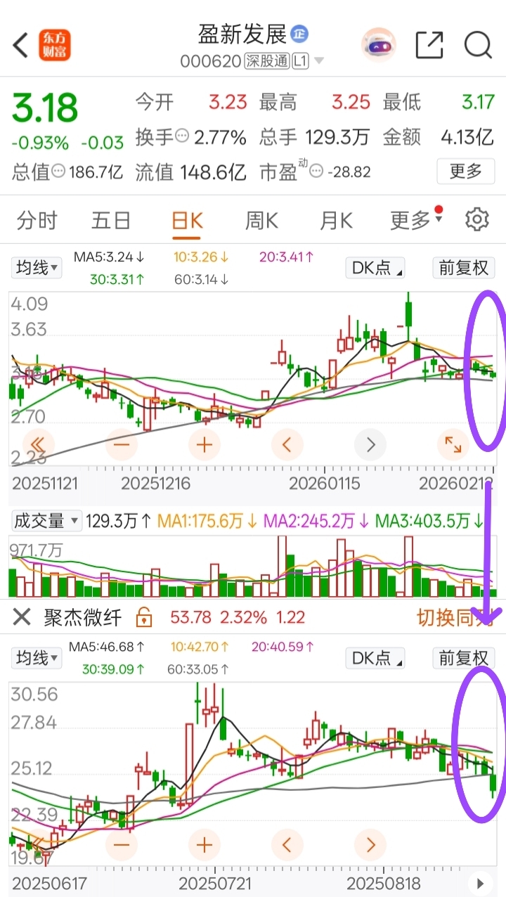 $盈新发展(SZ000620)$ 相同位置,与聚杰微纤的对比图