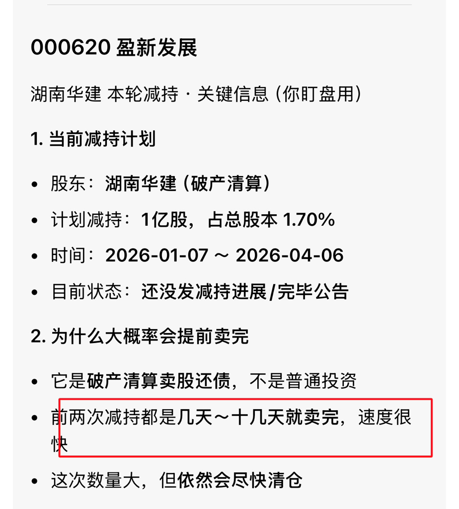 $盈新发展(SZ000620)$ 那些担心减持的,其实完全没有必要担心,说不定,春节后几天就有可能公告减持完毕了