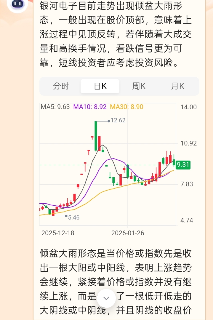 $盈新发展(SZ000620)$ 失算,失算,昨天银河电子是倾盆大雨,这下没戏啦,看来还得继续磨练