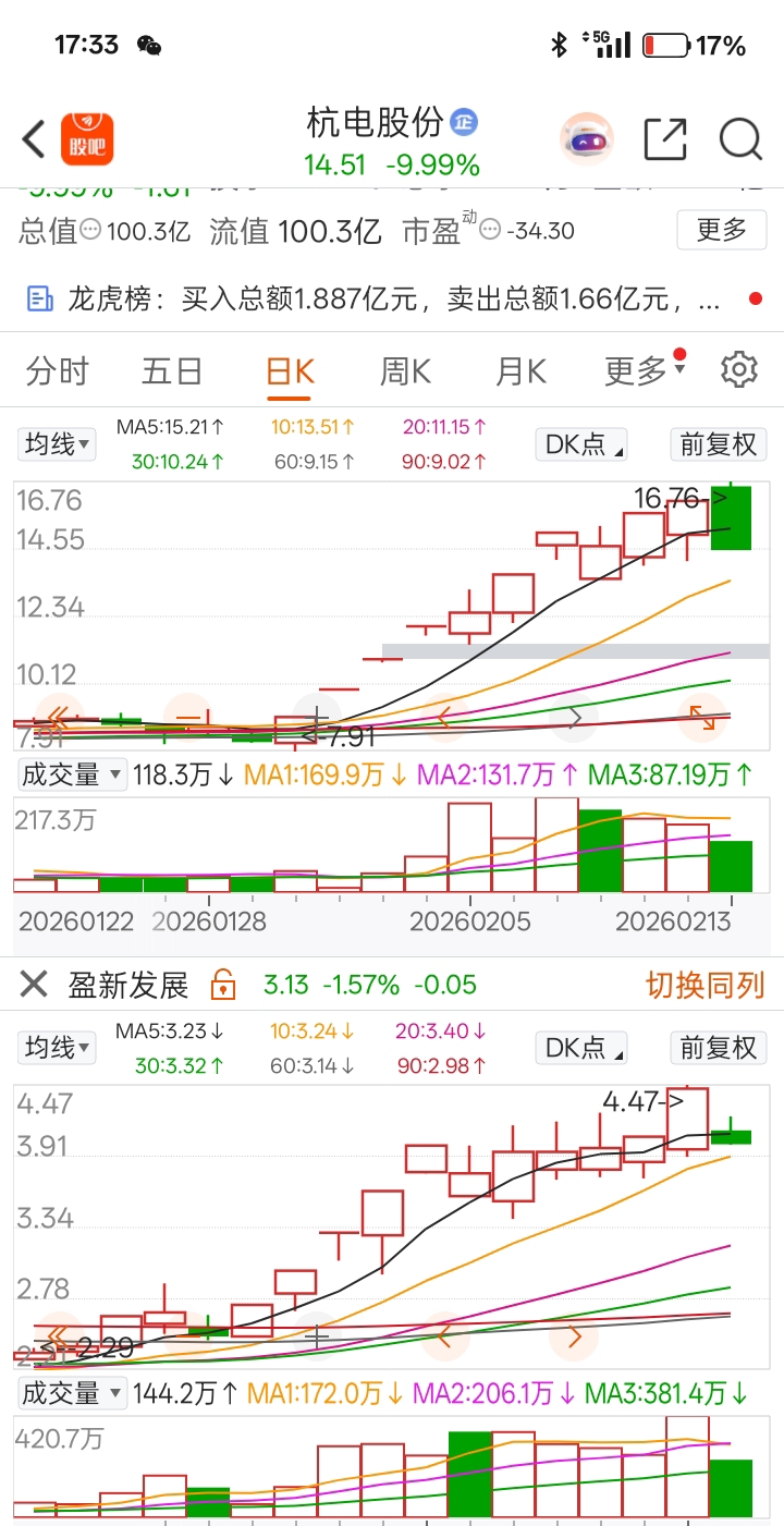$盈新发展(SZ000620)$ 杭电走势看盈新,杭电拿了盈新的剧本