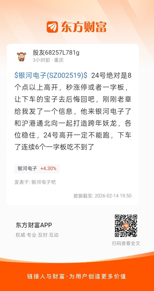 温馨提示: 1.根据《证券法》规定,禁止编造、传播虚假信息或者误导性信息,扰乱证券市场;2.用户在本社区发表的所有资料、言论等仅代表个人观点,与本网站立场无关,不对您构成任何投资建议。用户应基于自己的独立判断,自行决定证券投资并承担相应风险。《东方财富社区管理规定》