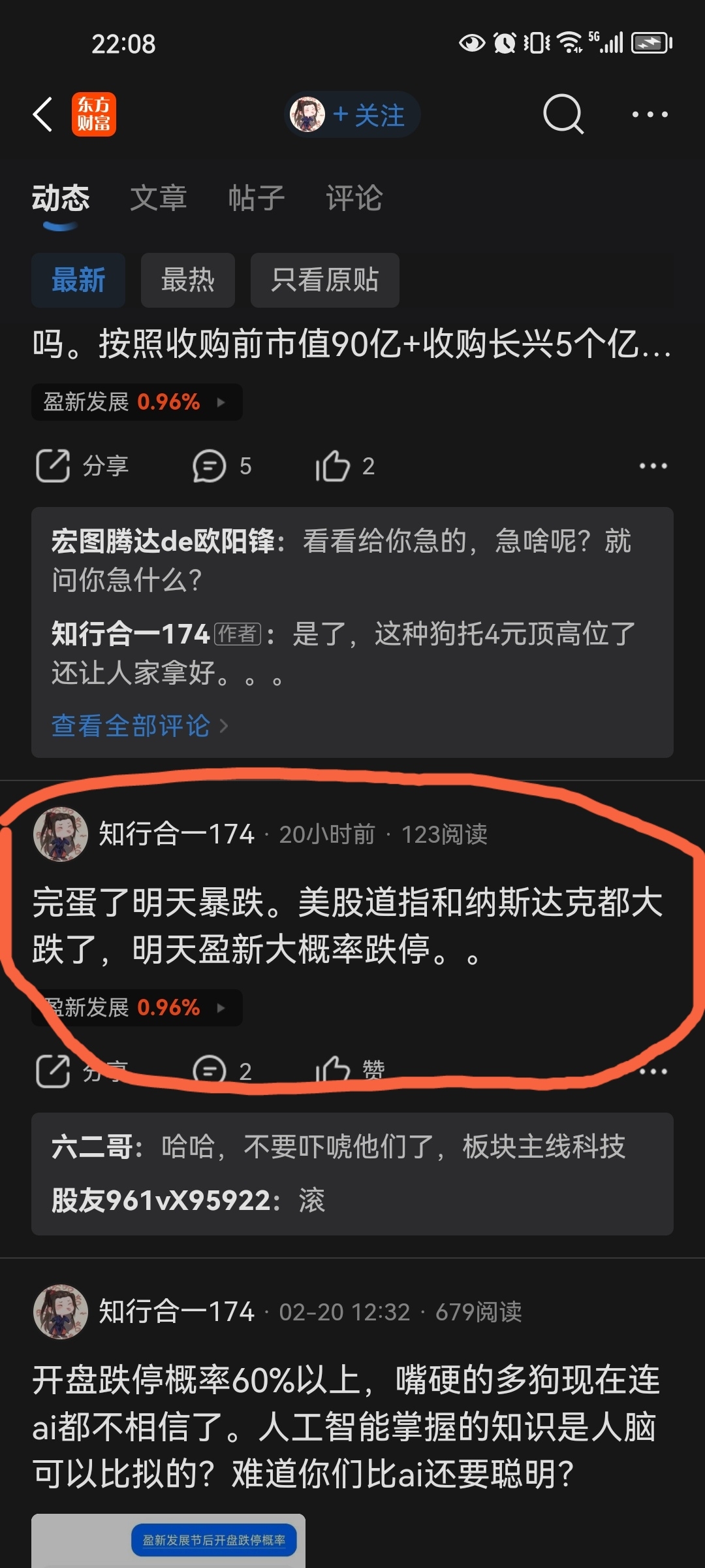 1) 你熟练掌握“ai炒股战法”,ai告诉你今日盈新发展会跌停,但今日盈新发展股票跌停没有?