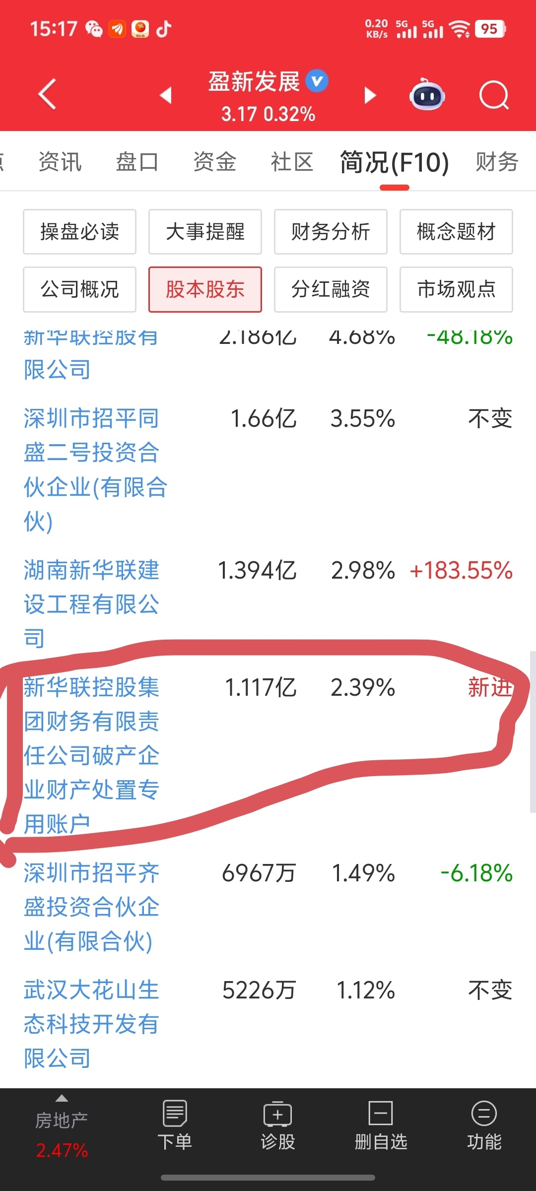 $盈新发展(SZ000620)$ 十大股东里新进的破产公司是干啥的,要破产清算吗