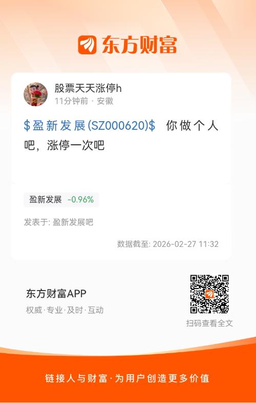 $盈新发展(SZ000620)$  你做个人吧,涨停一次吧