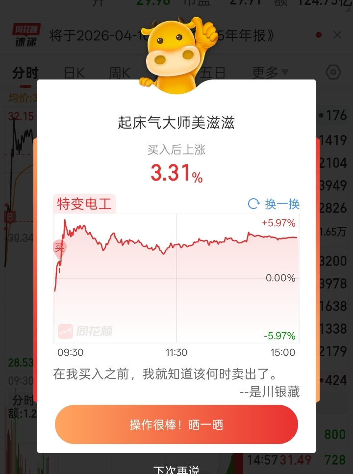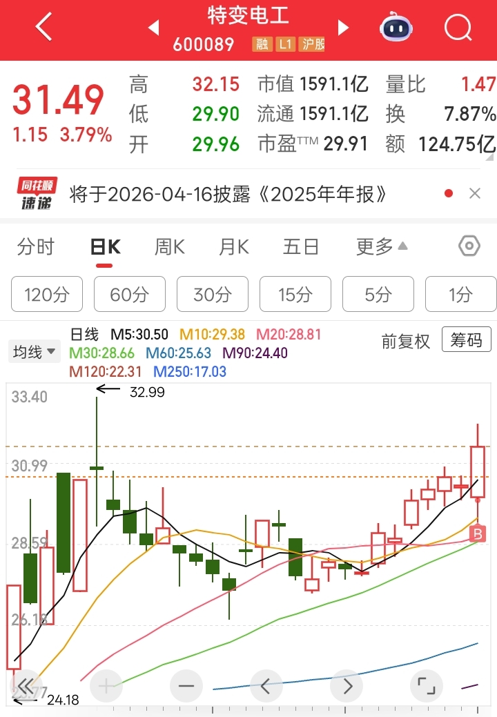 得瑟一下(晒图如下),哈哈哈,特变电工,鄙人不才,全仓买入,杠杆拉满,成本30.