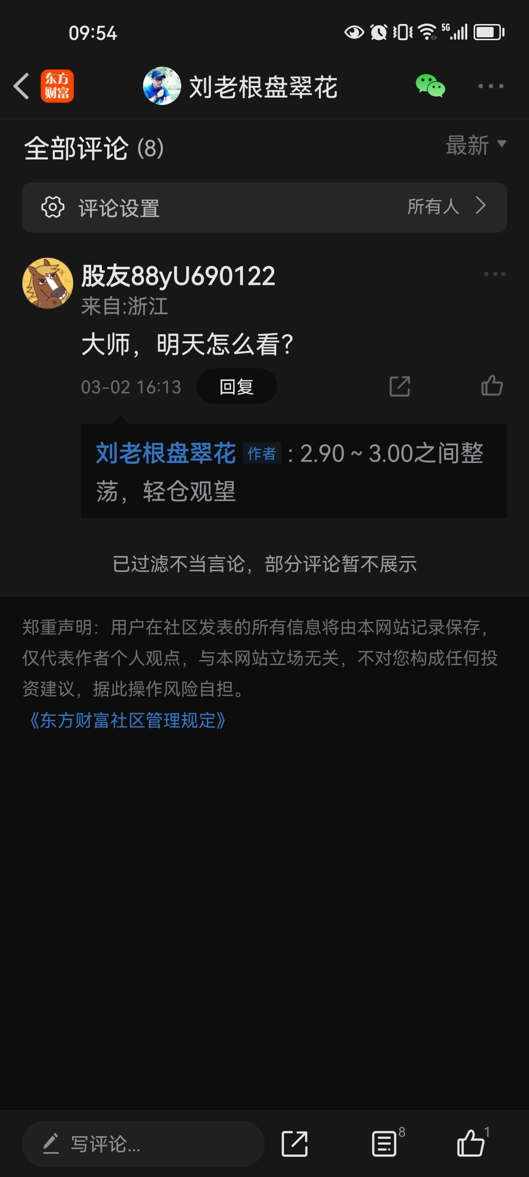温馨提示: 1.根据《证券法》规定,禁止编造、传播虚假信息或者误导性信息,扰乱证券市场;2.用户在本社区发表的所有资料、言论等仅代表个人观点,与本网站立场无关,不对您构成任何投资建议。用户应基于自己的独立判断,自行决定证券投资并承担相应风险。《东方财富社区管理规定》