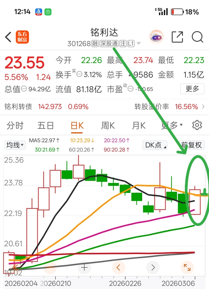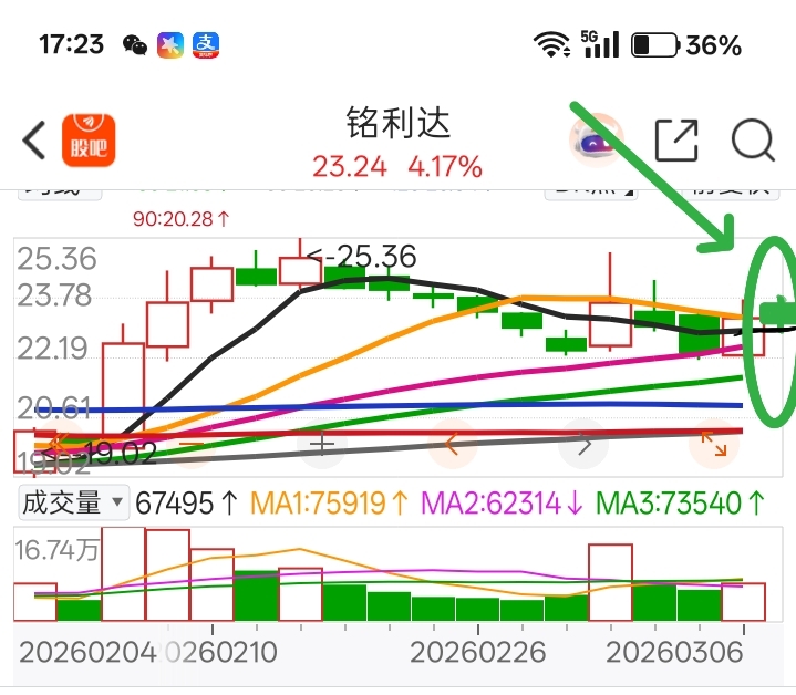 盈新目前已进入下降通道,我的铭利达也将进入横盘整理,低于之前的预期。初步预判了铭