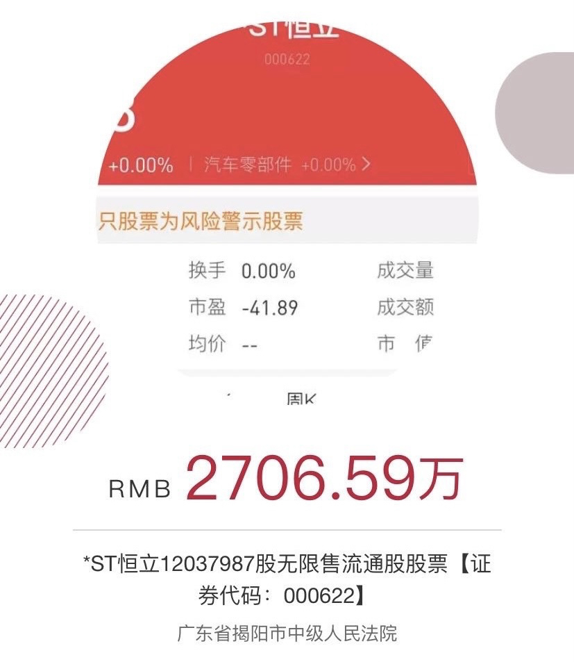 $*ST恒立(SZ000622)$ 陈宇帆 大佬?钱多?不怕退市风险?