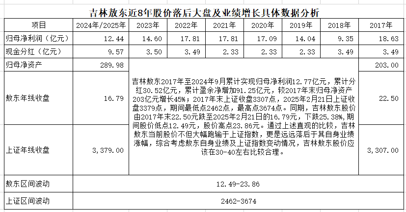 吉林敖东股价到底落后大盘及自己业绩多少--用数据说话