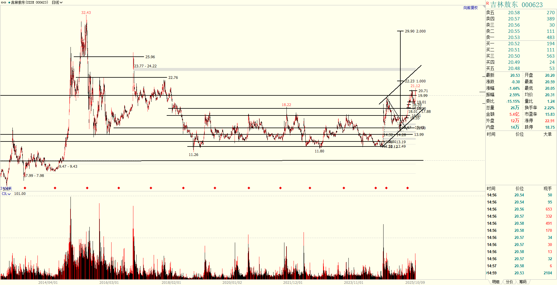 一把直尺打天下/吉林敖东12-17之间大规模底部箱体,趋势目标34;现阶段股价围