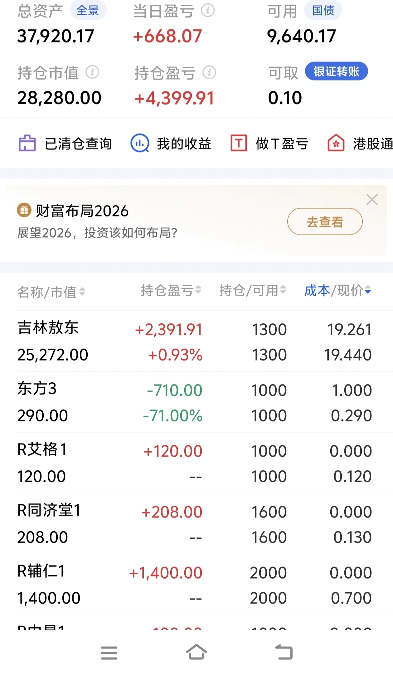 这就是我卖吉林敖东的盈利,低于19自动买入,做t