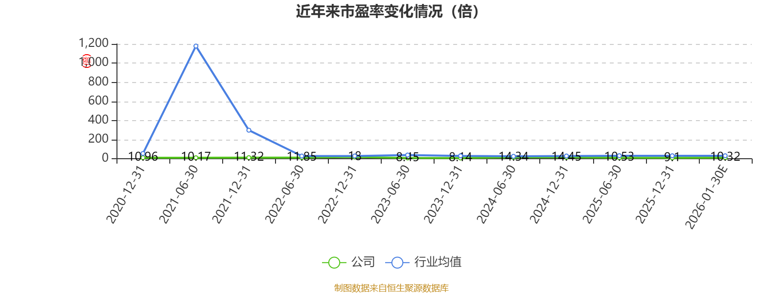 以本次披露业绩预告均值计算,公司近年市盈率(TTM)图如下所示: