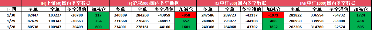 从各个期指各个月份的汇总数据来看,短期的多头主力们减持了多单4002手,空头主力