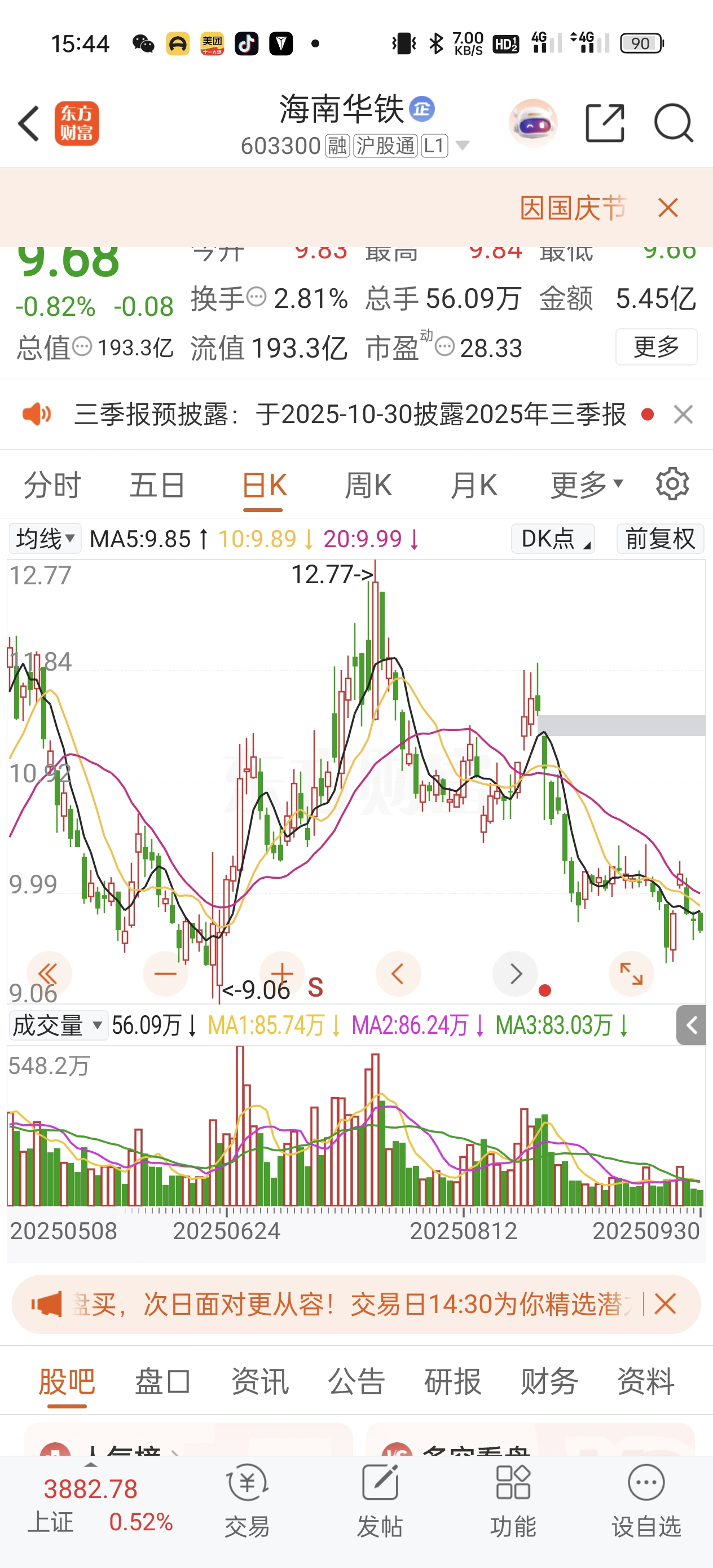 图形和海南华铁几乎一样,大神分析下是不是地雷联动,国庆后直接连跌几十个点哦