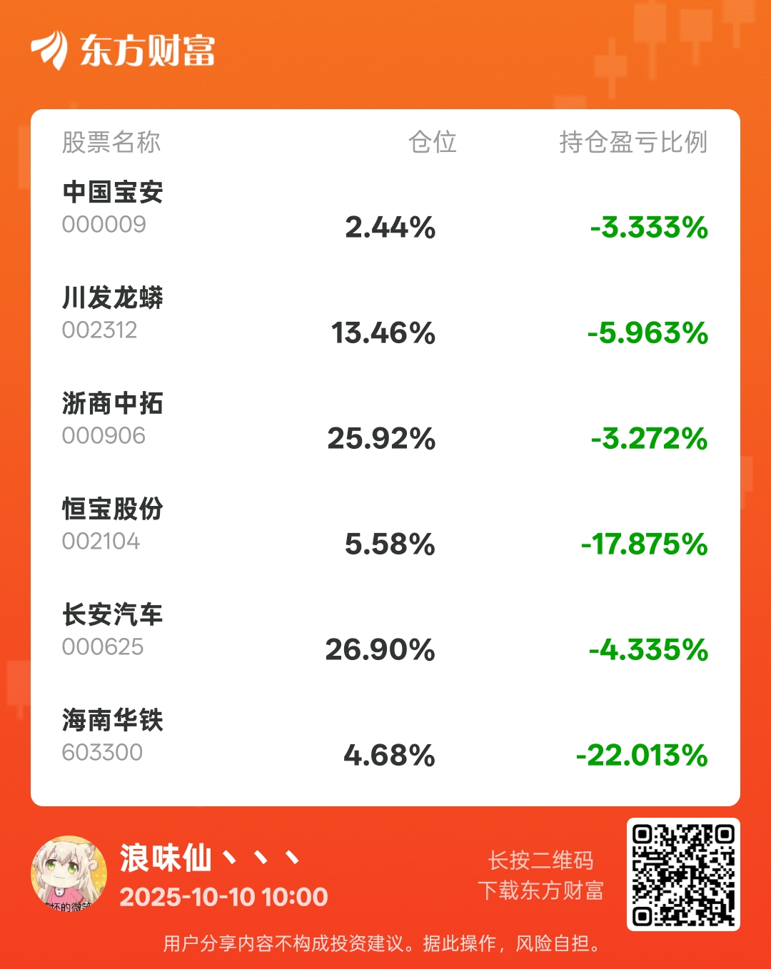 $长安汽车(SZ000625)$ $海南华铁(SH603300)$ $川发龙蟒(SZ002312)$ 准备送我六个跌停?