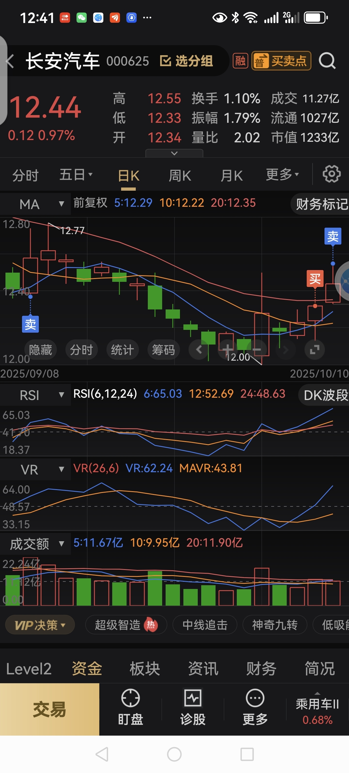 长安汽车,昨天建仓12.16,发帖说卖出12.53,还真的成交了12.53,太好