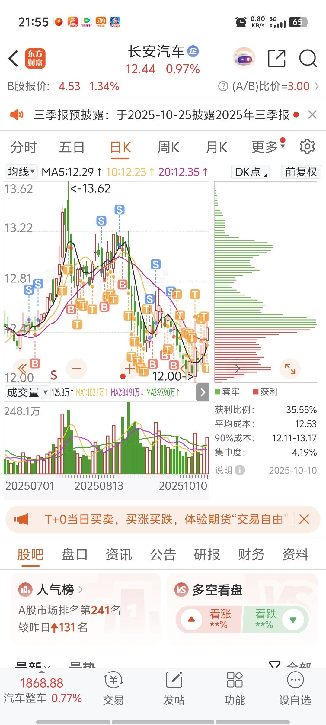 $长安汽车(SZ000625)$ 回本路漫漫,天天做t