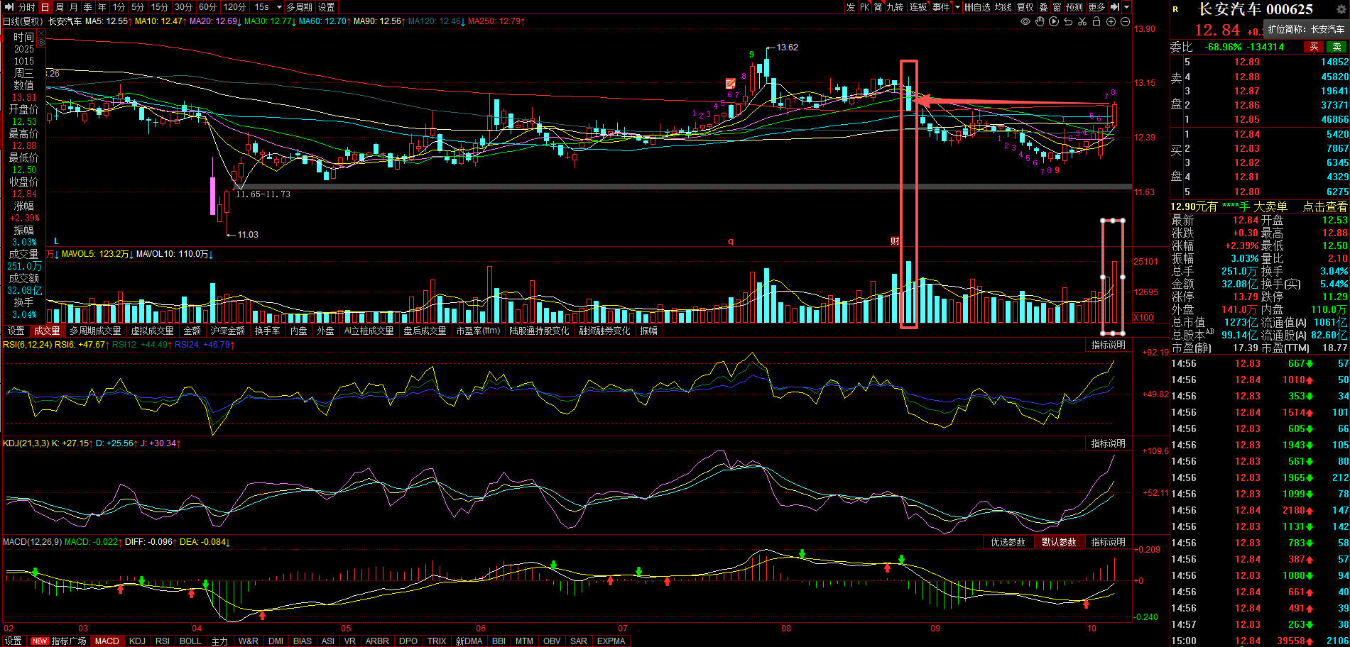@长安汽车从技术上看,走势不错,现在的量已经达到上根阴线大量的地方,从8/27开