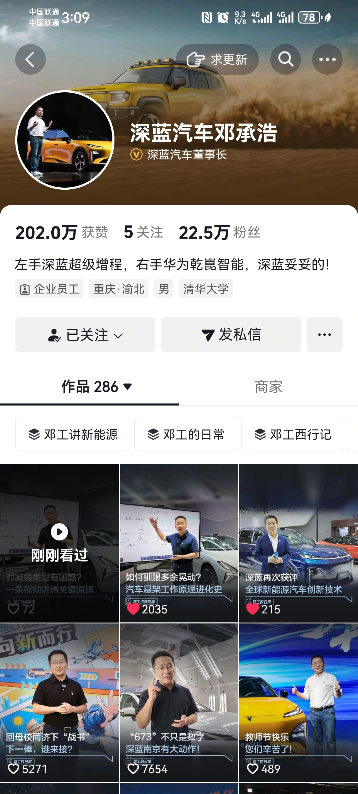 $长安汽车(SZ000625)$ 股东们关注一下深蓝汽车邓总,等涨到15块以上可以下手买一辆车了