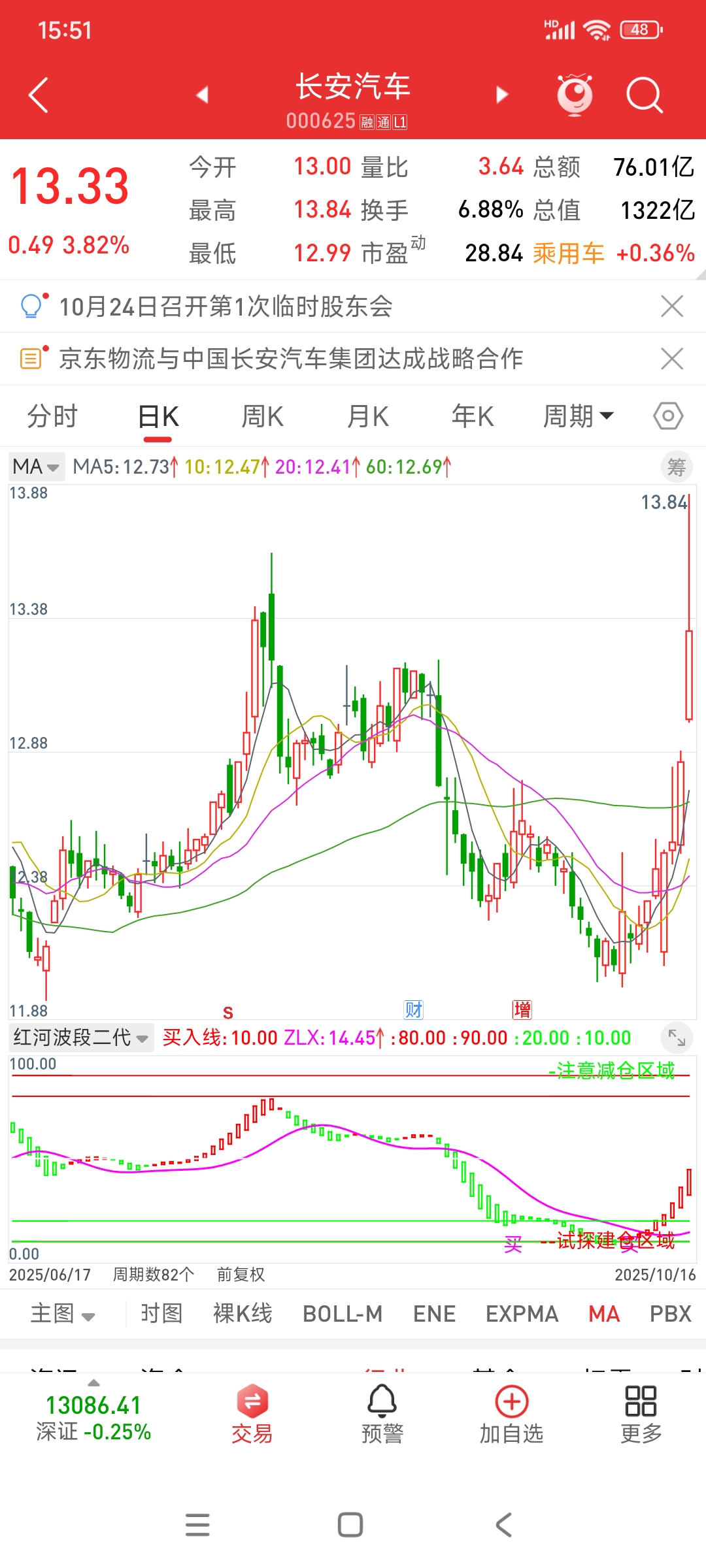 $长安汽车(SZ000625)$ 底部出现买字以后,又有绿柱转红柱做确认,我觉得已经很直观了,这一波趋势还没结束,也许明天会回调,但是回调以后还是看涨,毕竟红柱不停,上涨不止,红柱拉长,加速不止,继续冲