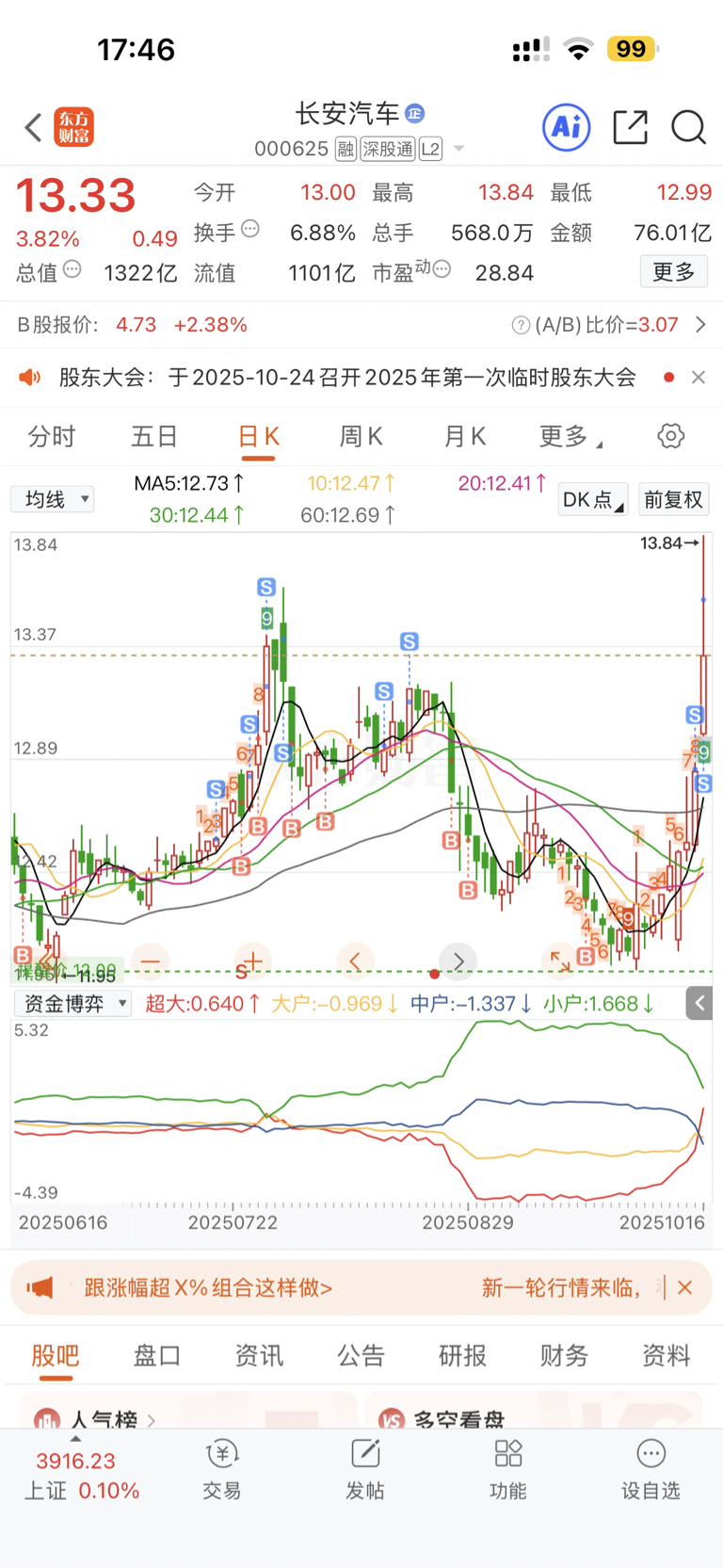 $长安汽车(SZ000625)$ 这次拿了五十天,十一个点清仓,跌下十三了我再回来。