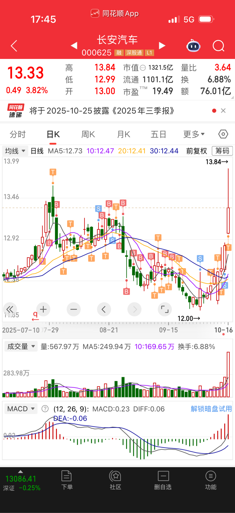 $长安汽车(SZ000625)$ 卖了点......应该不会踏空吧......
