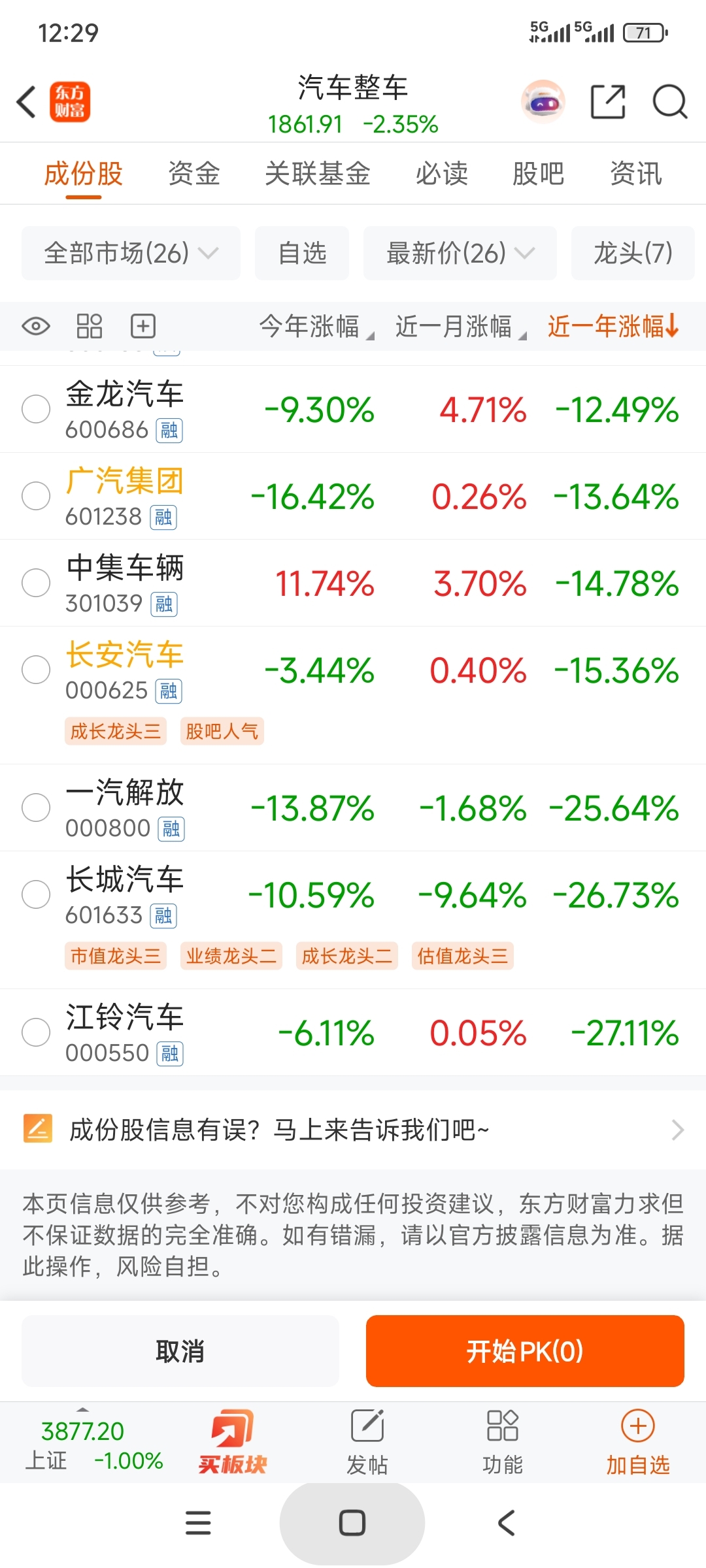 $长安汽车(SZ000625)$ 长期拿这票的人心里拔凉拔凉的,这一年大盘板块大涨,长安还垫低负15个点