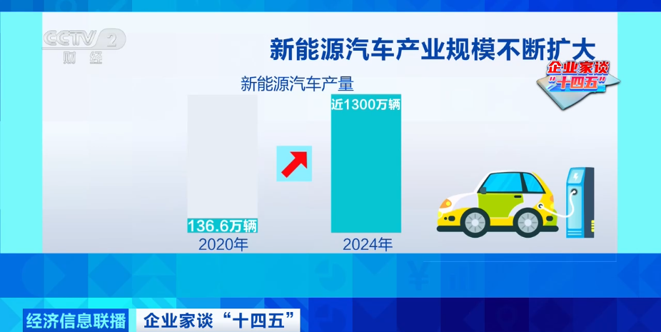 2024年,中国汽车产销总量连续16年稳居全球第一,其中,新能源汽车销量占比从2020年的5.4%提升至40.9%,产量从2020年的136.6万辆,跃升至2024年的近1300万辆。朱华荣说,“十四五”期间,我国新能源汽车产业规模不断扩大,离不开政府的顶层设计和消费市场的需求。