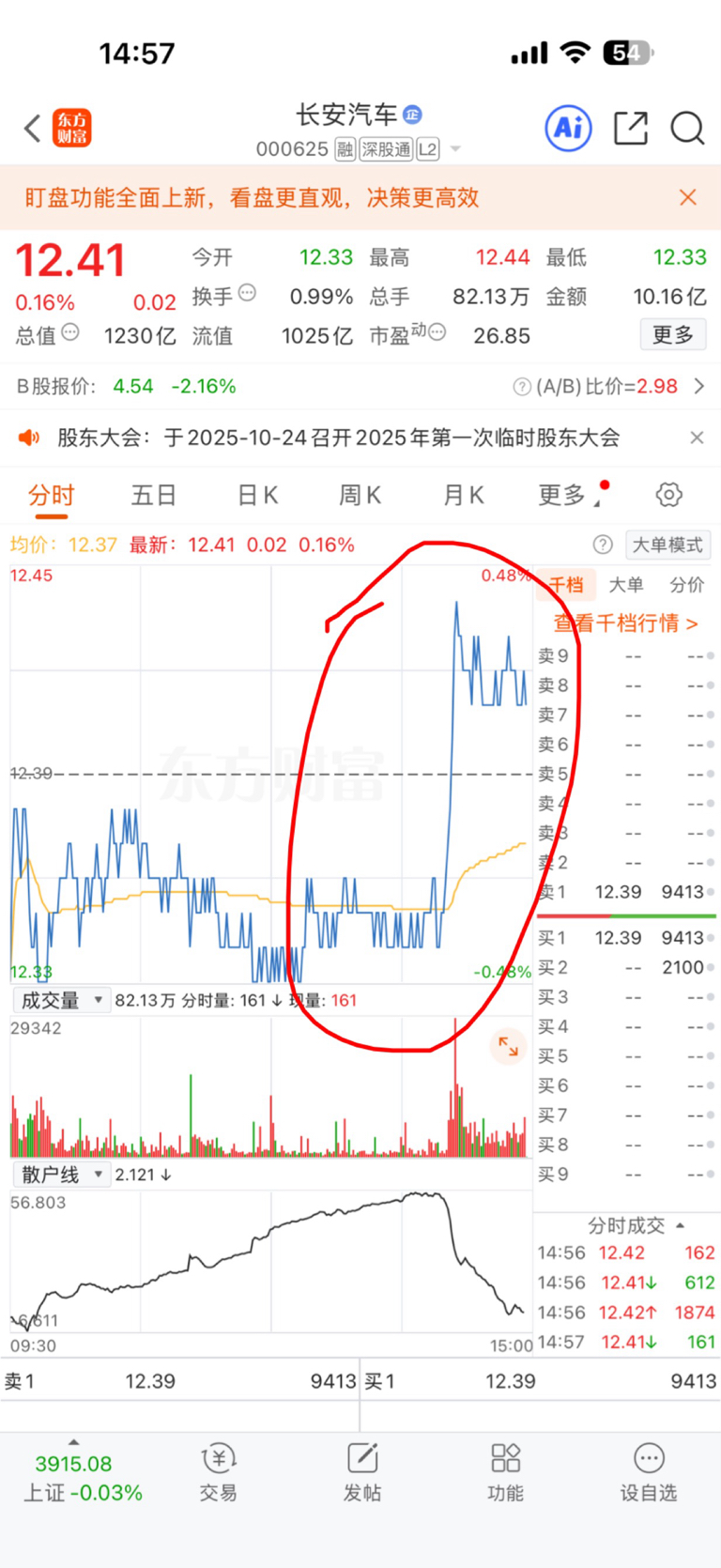 $长安汽车(SZ000625)$ 还以为拉涨停了,仔细一看,才红了两分钱