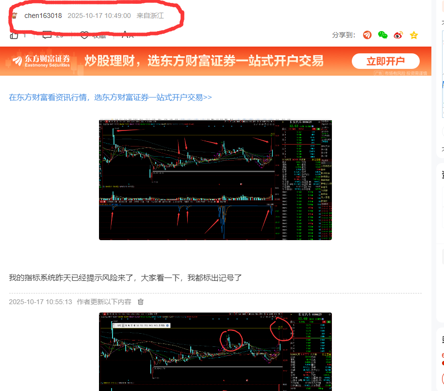 2025年10月17日发帖,表述我的指标系统一直显示风险,至少一直提示60分钟级