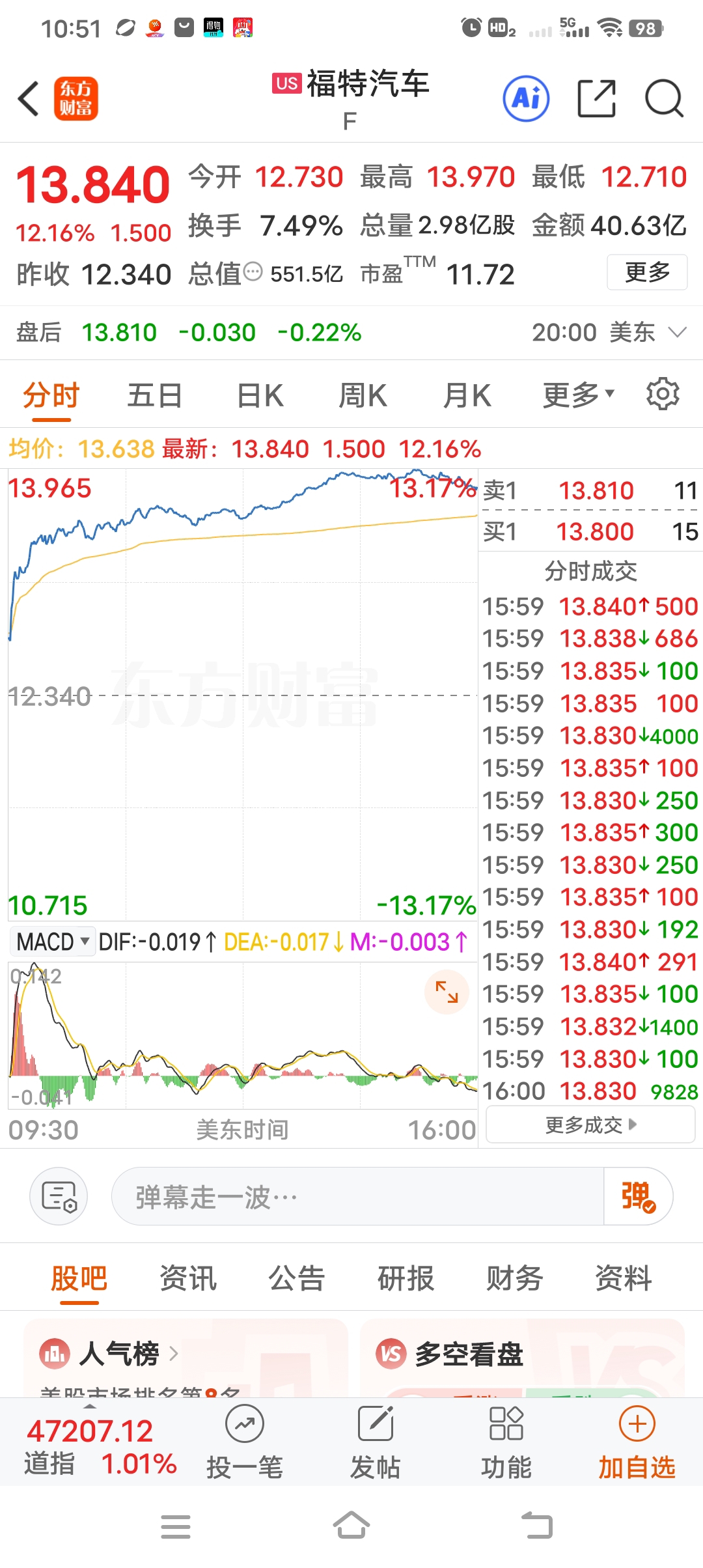 $长安汽车(SZ000625)$ 福特汽车大涨12%星期一长安能涨多少