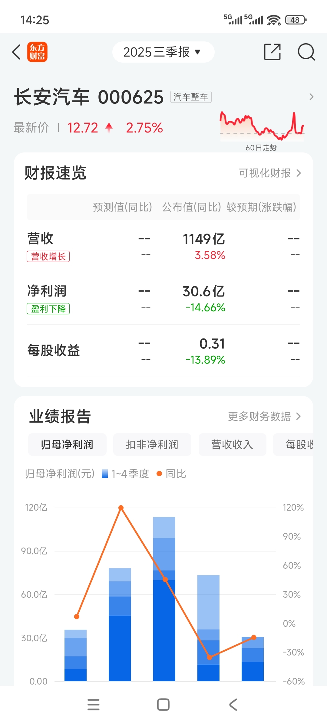 $长安汽车(SZ000625)$ 净利润下降,感觉要跌