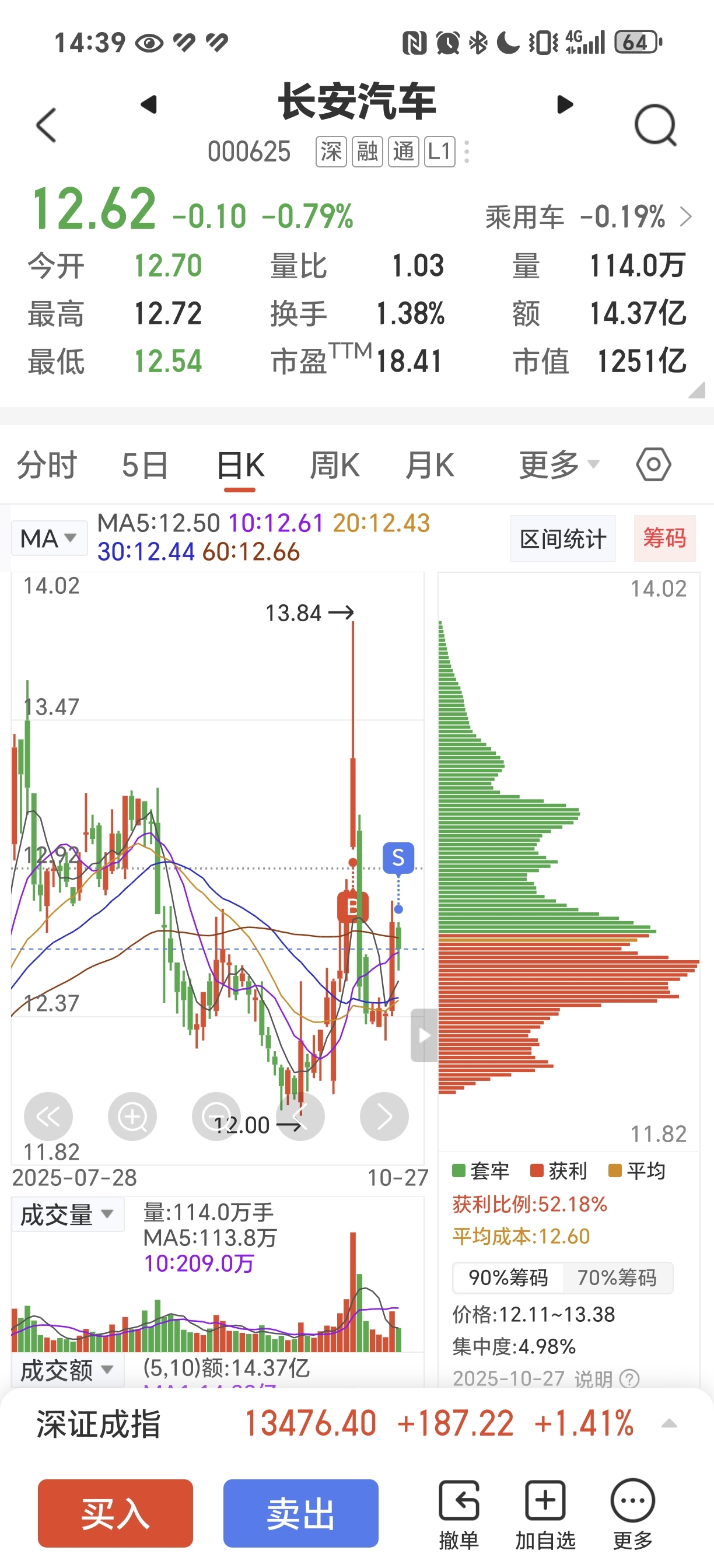 $长安汽车(SZ000625)$ 小亏点割肉走了,大盘快涨到了4000点,这货自从买入后就没大涨过