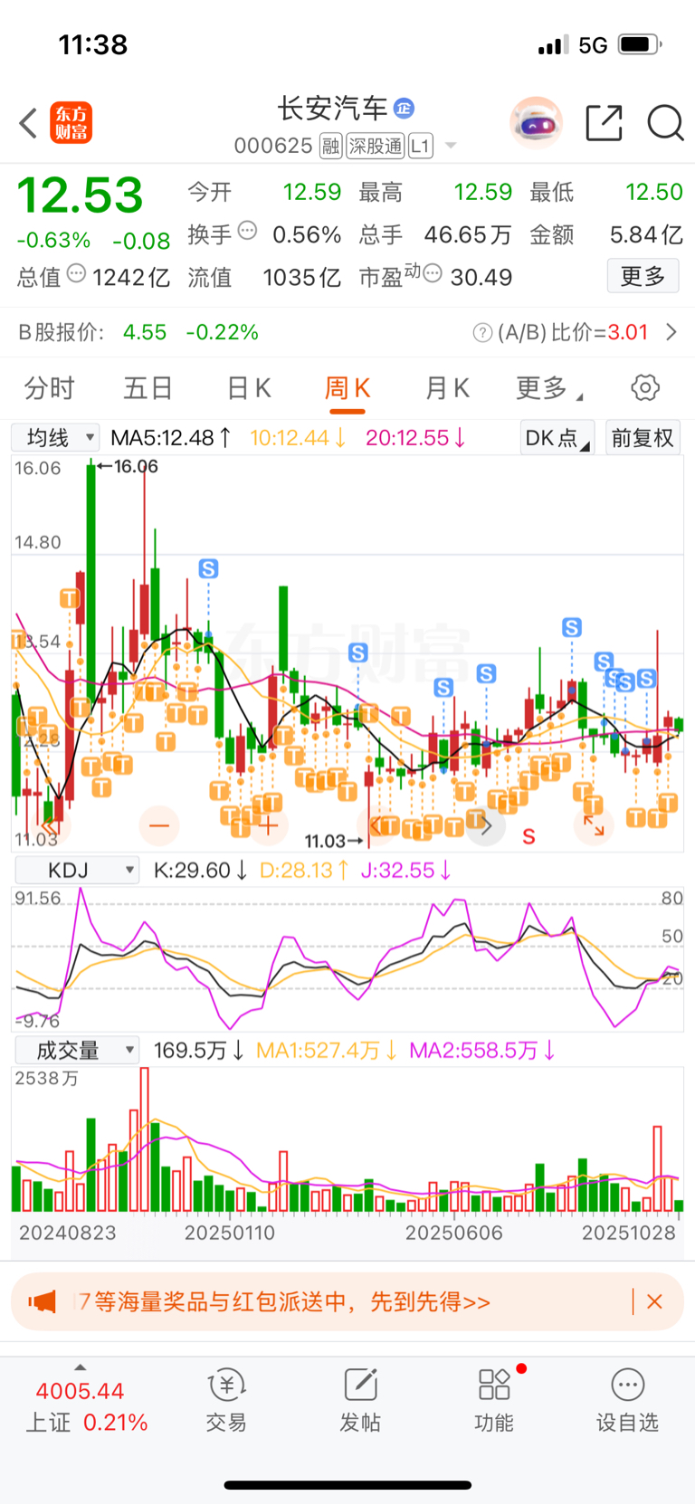 $长安汽车(SZ000625)$ 在长安两年了,成本T到了20.19,不回本不走