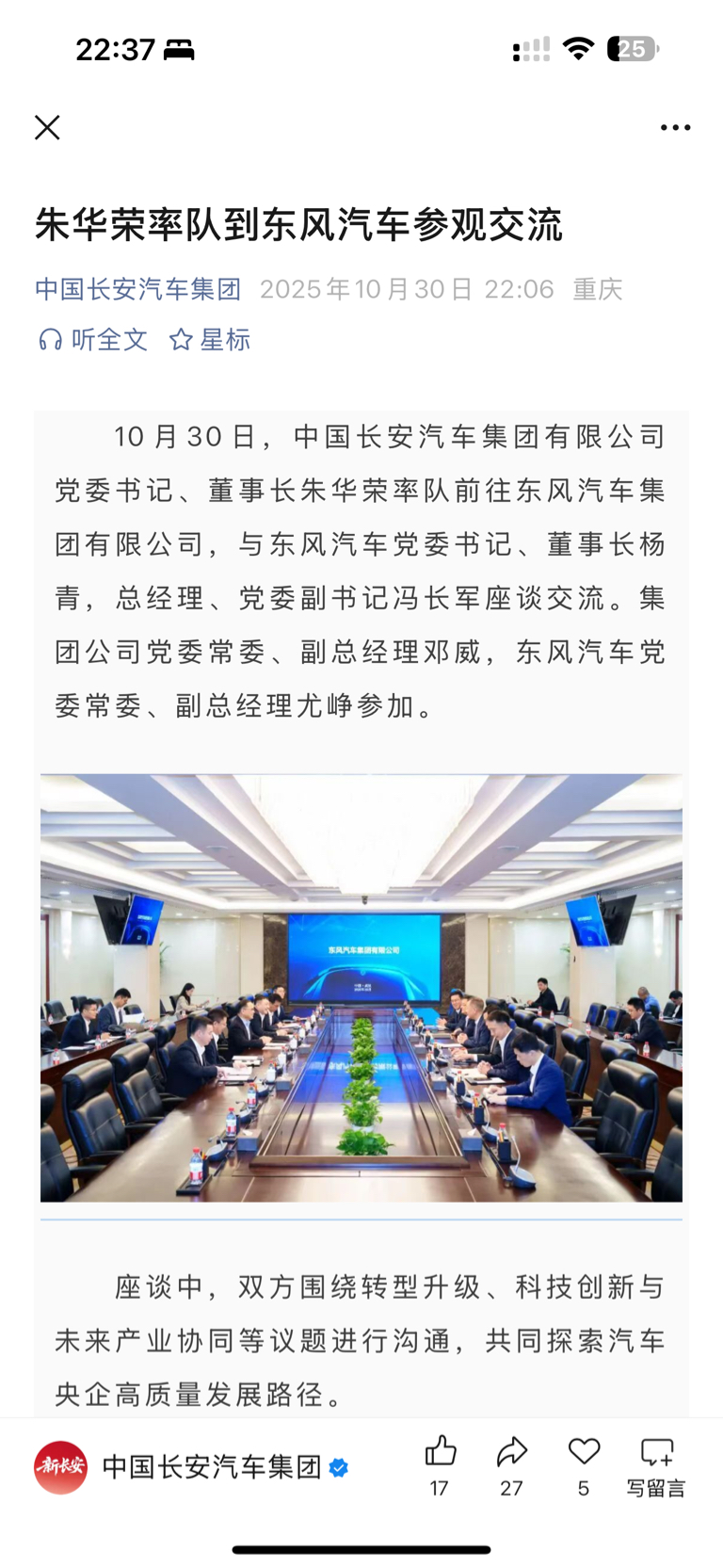 前几天王俊总去东风集团当副总,今天长安就带队去东风了,这真的让人联想到年初说的合