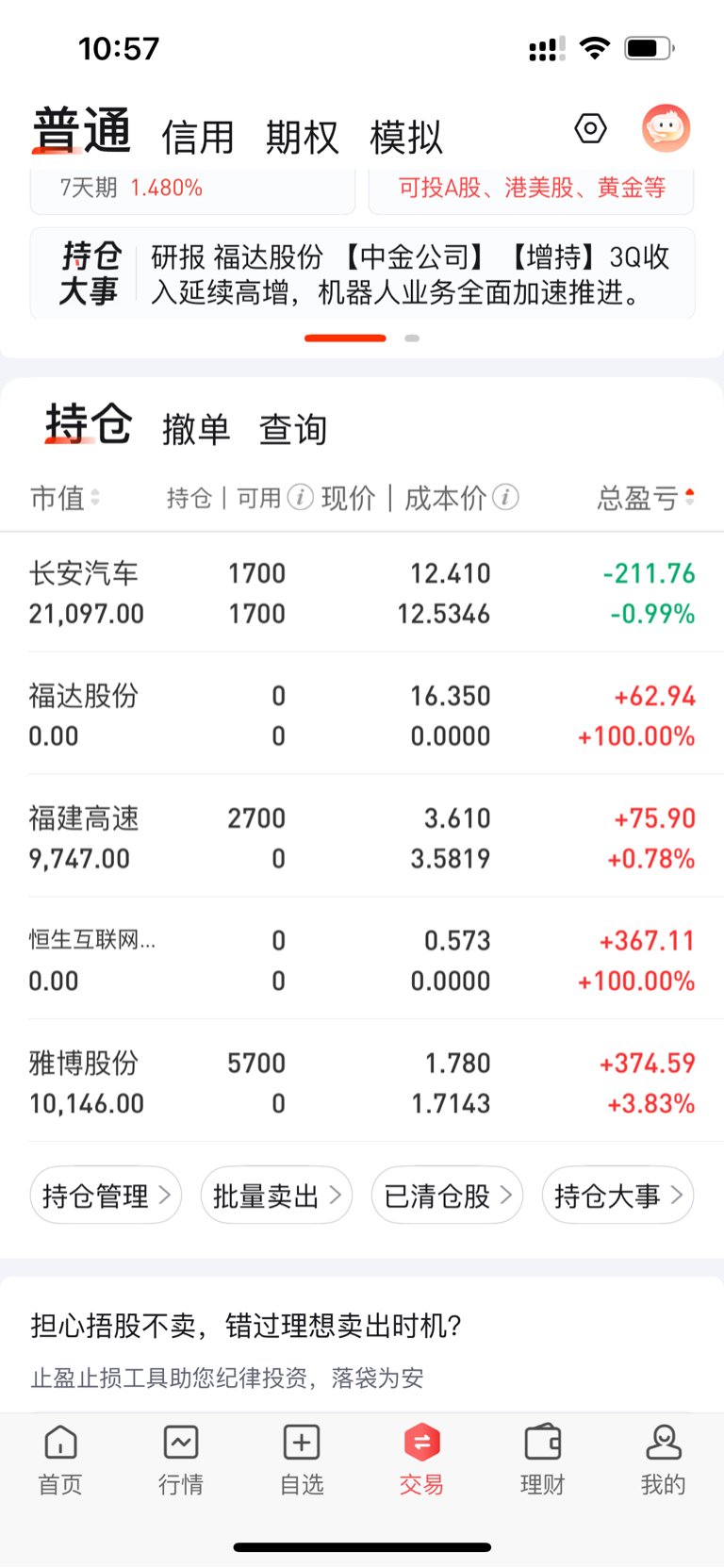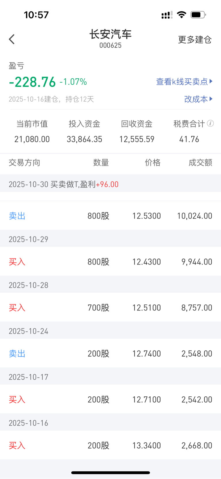 $长安汽车(SZ000625)$ 我容易我 嘛 从 16 开始 13.34 高站岗建仓2手这大半个月补仓做 t 现在持仓多了 15 手,成本做到 才12.5346长安汽车,希望你给力点,我的耐心是有限的,