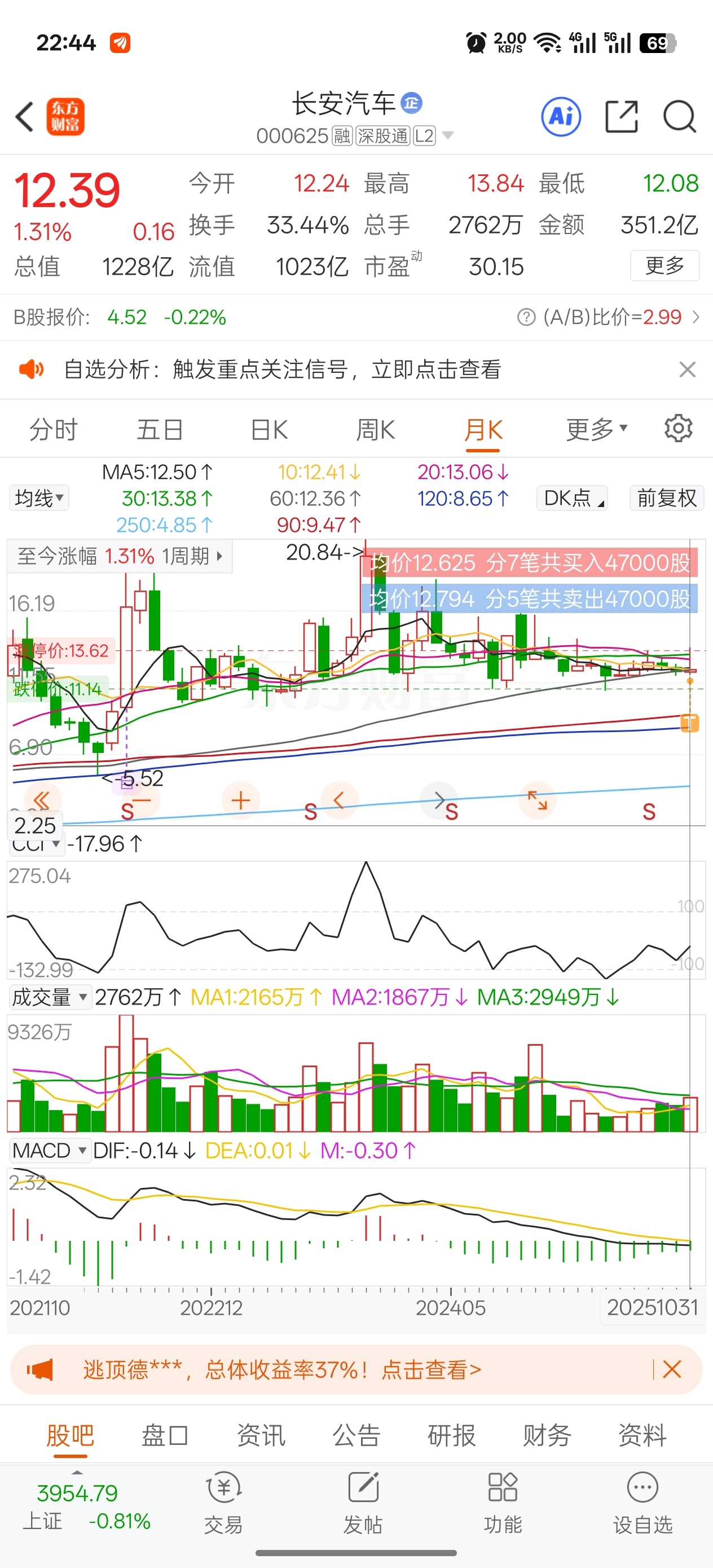 $长安汽车(SZ000625)$ 你们见过这种走势直接能起来的吗