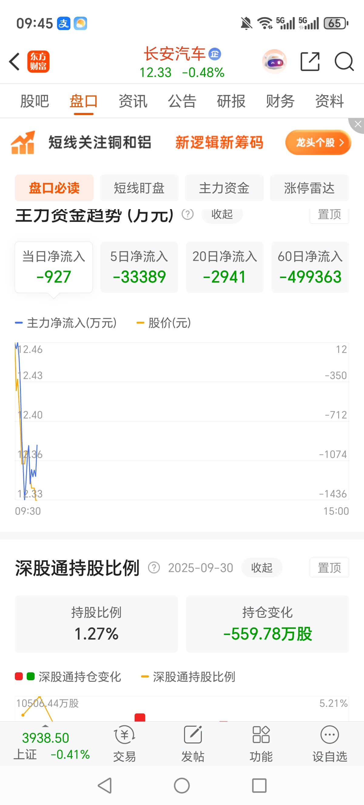 $长安汽车(SZ000625)$ 当日、五日、二十日、六十日全流出!这是准备卖公司…