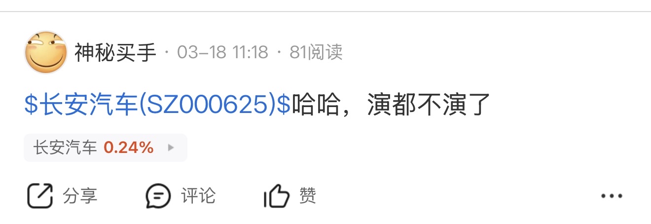 $长安汽车(SZ000625)$ 哈哈,演都不演了