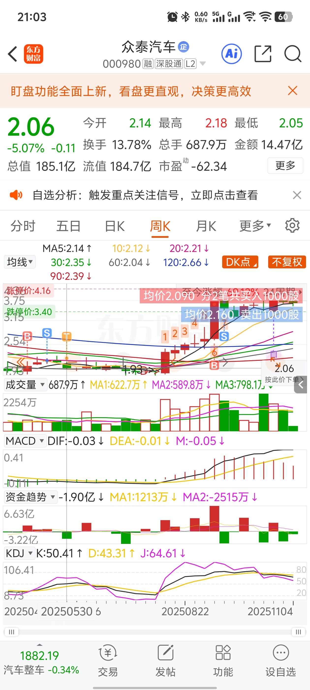 众泰3个月涨了百分之八十,我为啥在最低点卖了,你们不去买,我都说了我是风向标