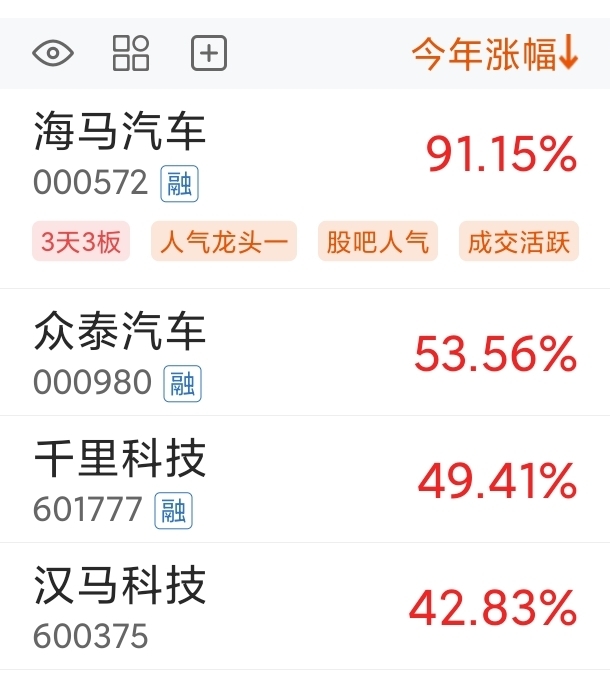 $长安汽车(SZ000625)$ 今年涨得好的,都是业绩差的,从没上过销量排行榜的