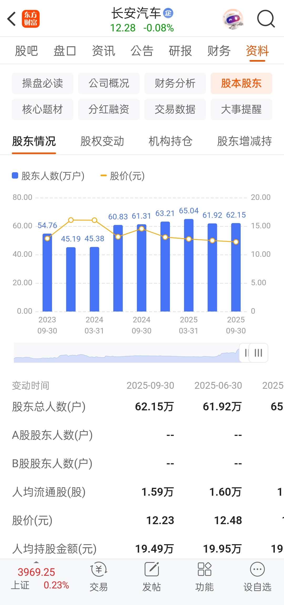 $长安汽车(SZ000625)$ 62万股东,散户体系太庞大了,都觉得长安太稳都买,反而不涨,大家都卖个1/2仓位吧,现在流行炒福建海峡概念