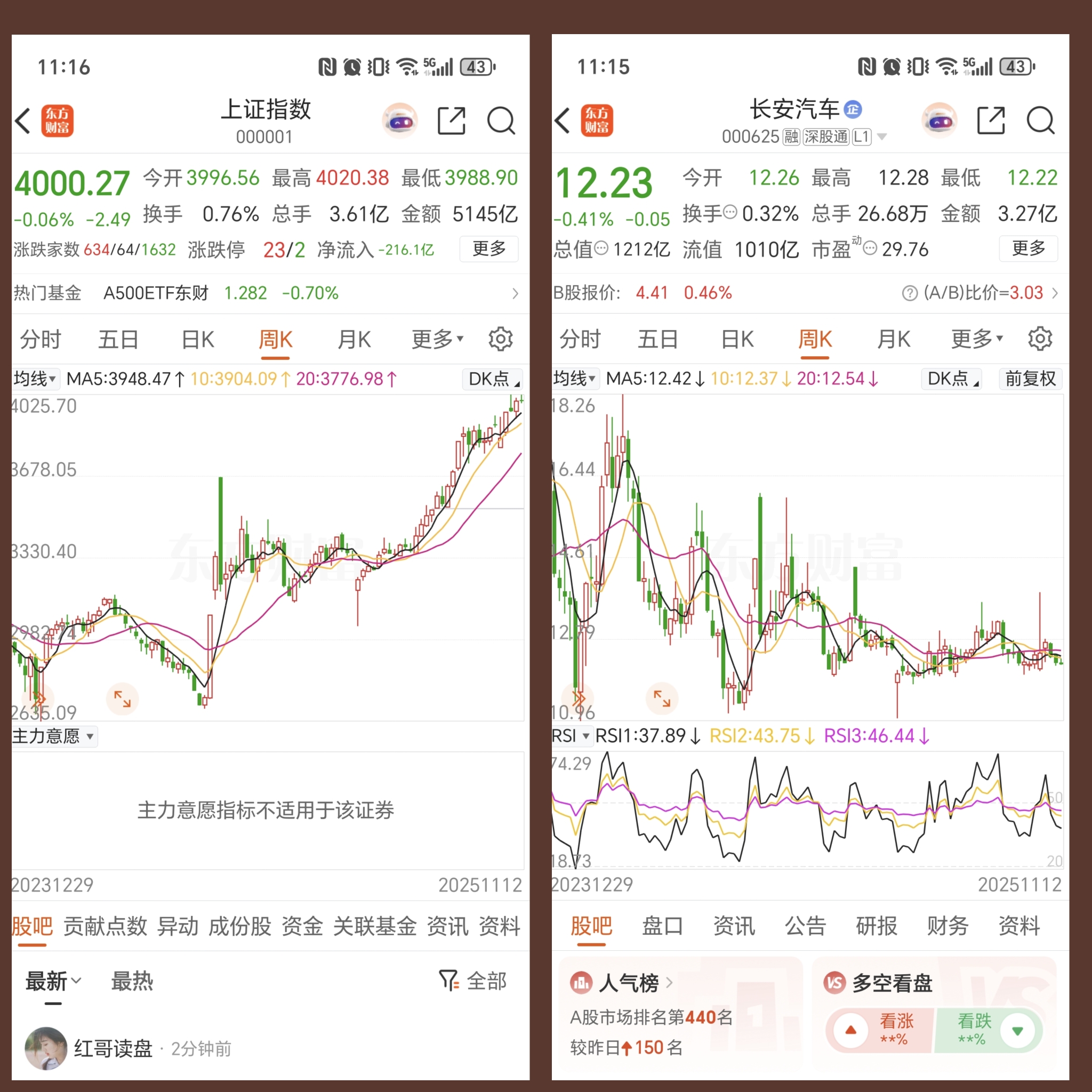 $长安汽车(SZ000625)$ 周线大A从2900干到4000.长安汽车从16干到12!