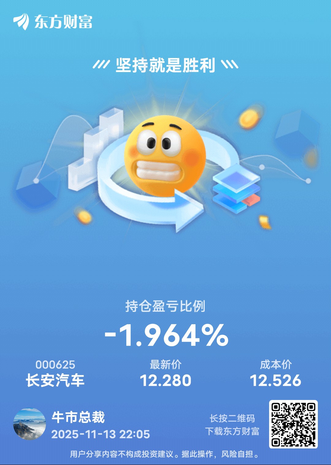 $长安汽车(SZ000625)$ 从13.6的成本做T到12.52现在我的这船小好调头。