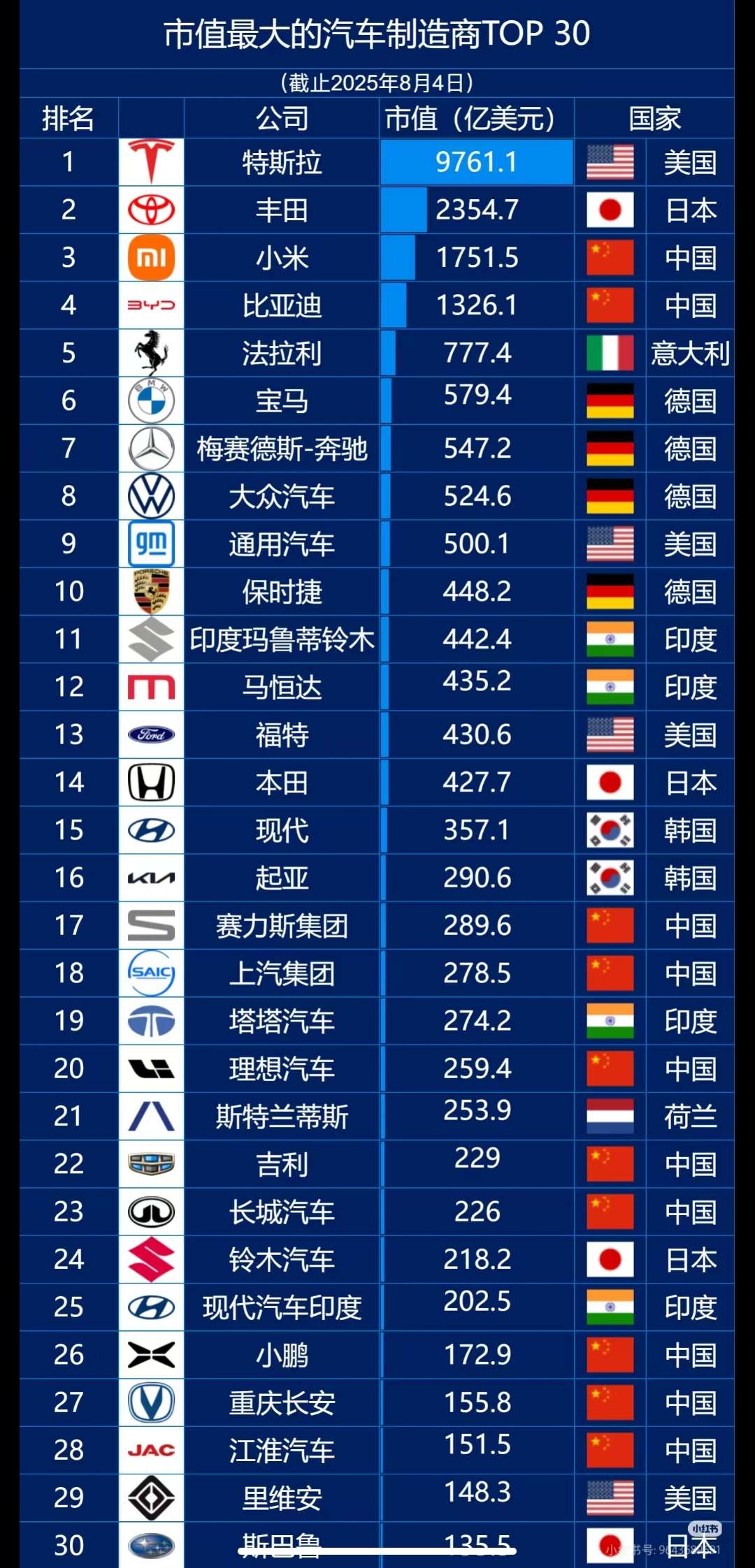 $长安汽车(SZ000625)$ 市值 全球排名倒数第二