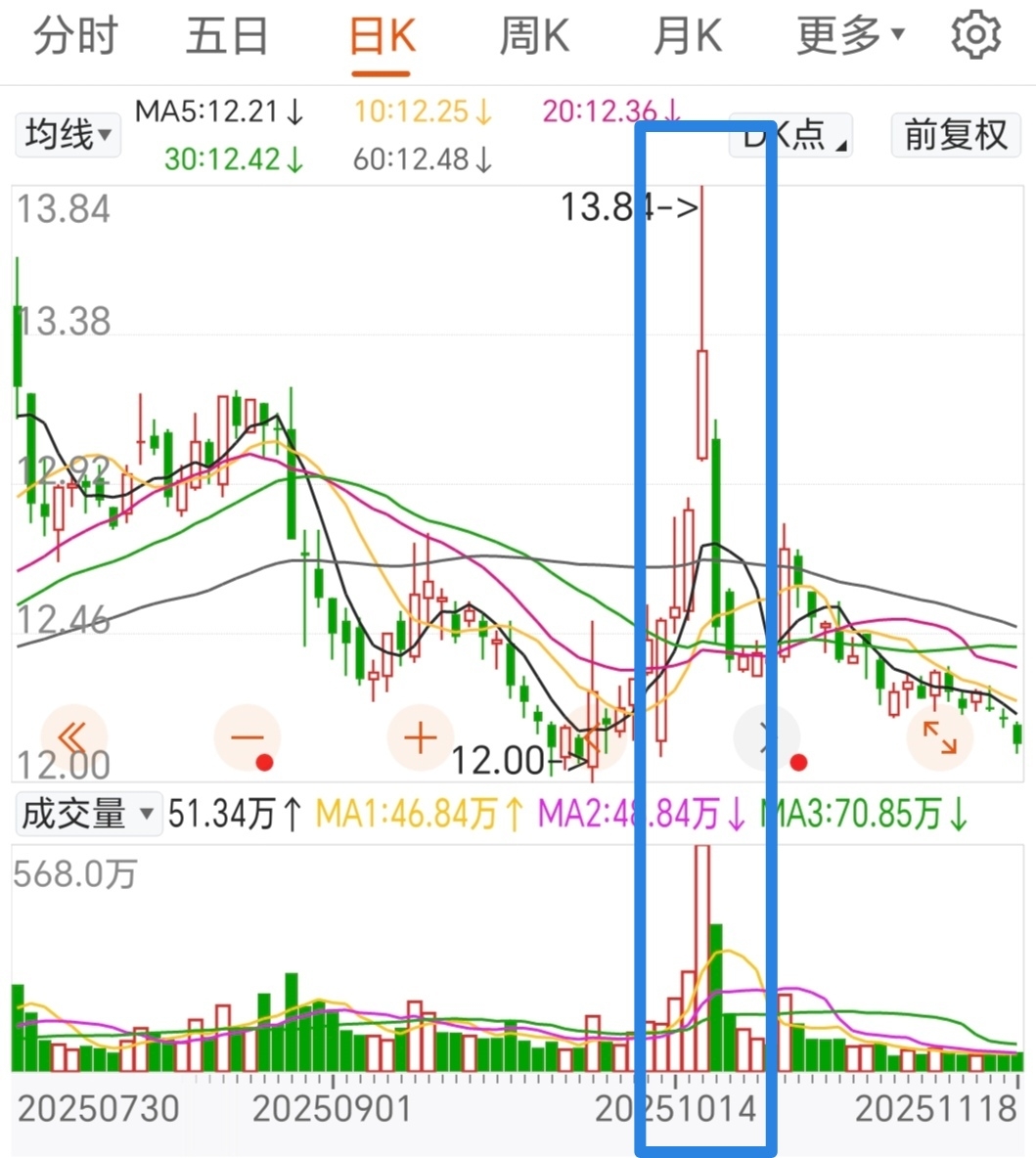 13.84元这一天套了70个亿!这批资金不割肉是不会涨的,不断的阴跌是让他们交出