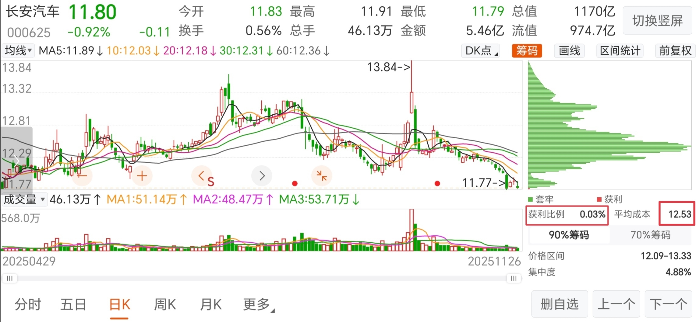 $长安汽车(SZ000625)$ 玩长安玩到极致了,获利比例0.03%,平均成本12.53,大哥们都在这里搏命啊!