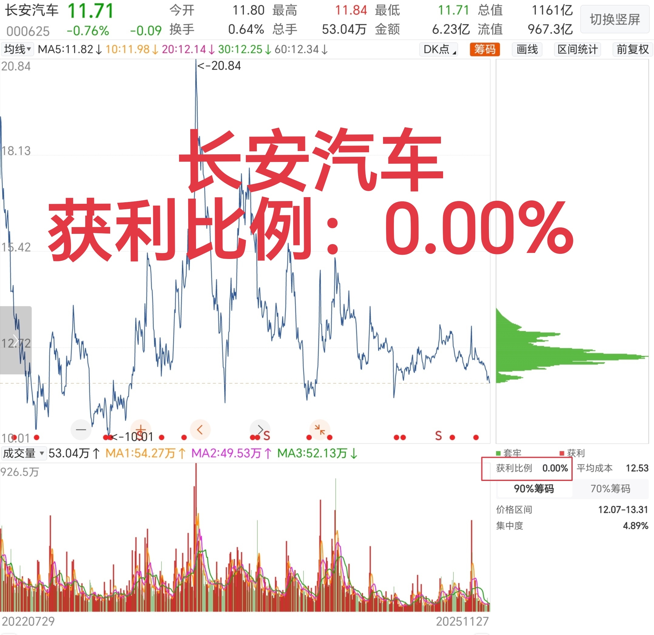 $长安汽车(SZ000625)$ 闻所未闻!获利比例0.00%,全军覆没!全体关灯吃面!从未见过如此五齿之吐!!!