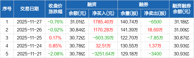 长安汽车:融资净买入1785.4万元,融资余额31.01亿元(11-27)
